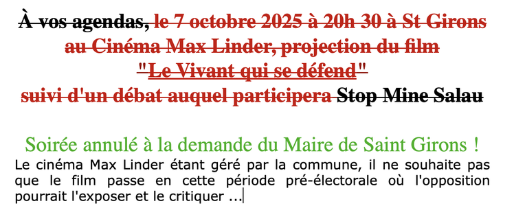 stopminesalau@riseup.net ou stopminesalau@protonmail.com ou contact@stopminesalau.fr